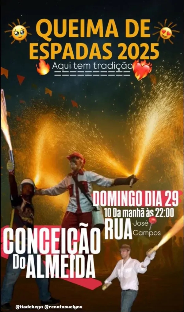 Em Conceição do Almeida, no Recôncavo baiano, a polêmica sobre a guerra de espadas também tem sido destaque. Após um vídeo do ex-gestor municipal Ito de Bega circular nas redes, a atual prefeita Renata Suely (PSD) reforçou o convite para a "Festa das Espadas 2025" – atividade considerada ilegal no estado desde 2017.